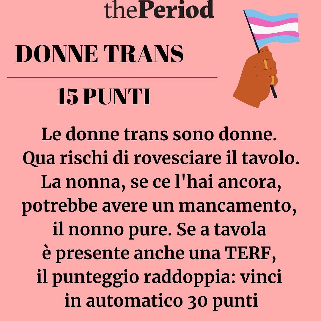 Mi ha colpito un post della newsletter femminista thePeriod che rilancia un gioco inventato dalla suddetta, di per sé anche simpatico: si ottengono punti «affrontando argomenti scomodi (e femministi) con amici e parenti durante le feste». E dunque, tra le altre regole di ingaggio: